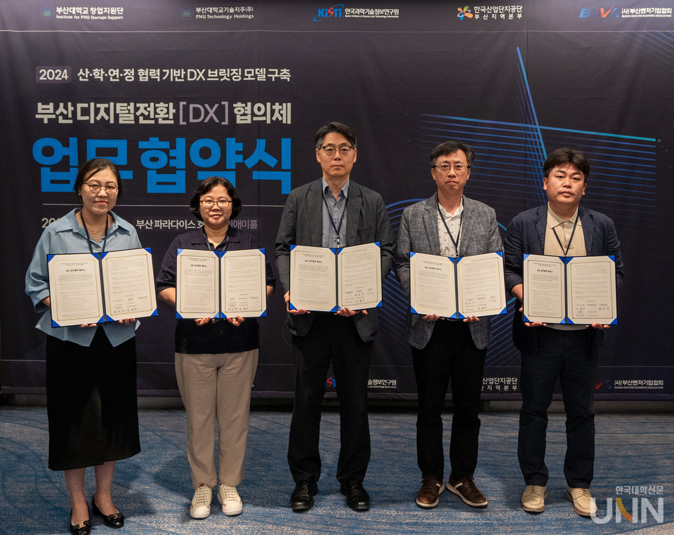 ‘부산 디지털전환(DX) 협의체’는 지역 산업의 디지털 혁신을 위한 대표 격인 지역혁신기관 연합체로, △부산대 창업지원단 △부산대기술지주㈜ △한국과학기술정보연구원 부산울산경남지원 △한국산업단지공단 부산지역본부 △(사)부산벤처기업협회 등 5개 기관으로 구성됐다. 협약기관들은 상호 보유한 역량과 인프라 공유를 통해 지속 가능한 동남권 제조혁신 DX 생태계를 조성하고자 출범했다.