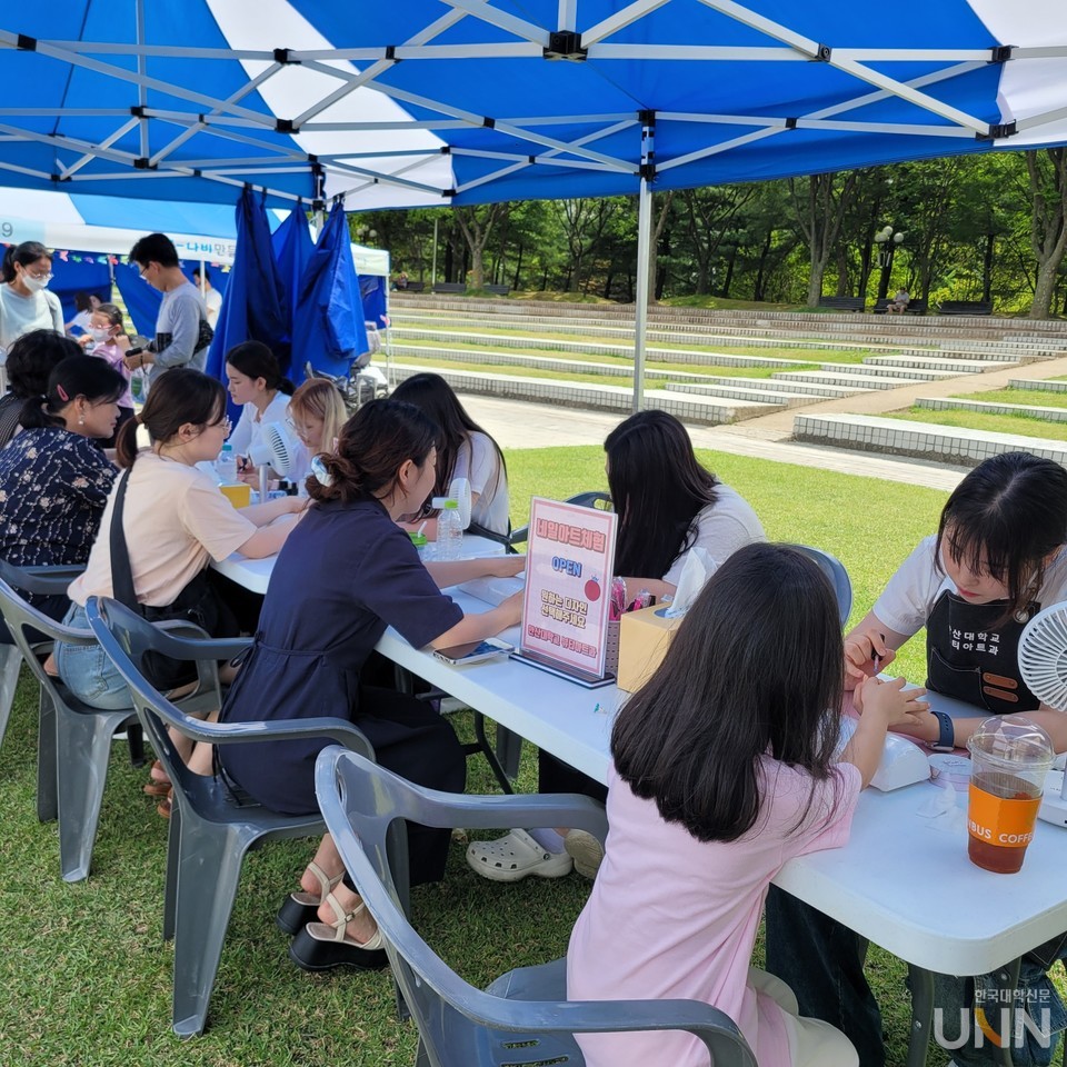 [한국대학신문 이정환 기자] 안산대학교(총장 윤동열) 의료뷰티학부는 지난 15일 안양시 평촌 중앙공원에서 열린 제16회 ‘안양북페스티벌’ 행사에 참여해 네일체험존을 운영했다고 밝혔다. 이번 행사는 새마을문고 안양시지부에서 주관한 시민과 함께하는 독서문화축제로, 다양한 프로그램 부스를 통해 6000명 이상의 시민이 참여했다.