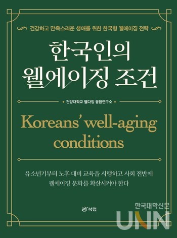 [한국대학신문 이정환 기자] 건양대학교(총장 김용하) 웰다잉융합연구소(소장 김광환)가 우리나라 전체 국민 중 65세 이상의 고령인구가 1천만 명을 넘어서는 초고령시대가 닥쳐온 가운데 ‘행복한 나이 들기의 조건은 과연 무엇인가?’를 과학적이고 체계적으로 파헤친 신간 《한국인의 웰에이징 조건》을 펴냈다.