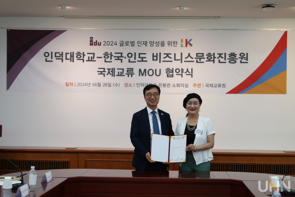 인덕대는 지난달 26일 교내 본관 3층 총장실에서 한-인도 비즈니스 문화진흥원(IKBCC; Indo-Korea Business Culture Center;IKBCC)과 국제교류 협력 및 공동 발전을 위한 업무협약(MOU)을 체결했다.