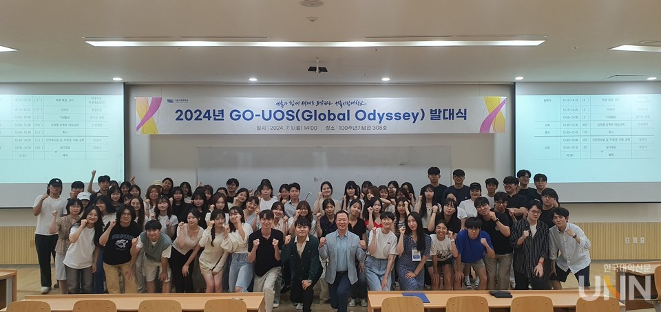 [한국대학신문 정수정 기자] 서울시립대학교(총장 원용걸)는 지난 1일 본교 100주년기념관에서 ‘2024년 GO-UOS(Global Odyssey) 발대식’을 개최했다. 이번 발대식은 학생들에게 다양한 문화 체험과 글로벌마인드를 함양하기 위한 해외 탐방 프로그램의 시작을 알리는 자리로 마련됐다.