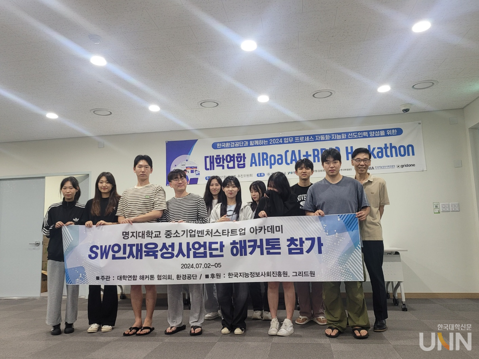 [한국대학신문 이정환 기자] 명지대학교(총장 유병진) 중기부 벤처·스타트업 아카데미 SW인재육성사업단이 지난 2일부터 5일까지 3박 4일간 충북 제천 한국환경공단 인재개발원에서 진행된 ‘2024 AIRpa(AI+RPA) 해커톤’(이하 해커톤)에 참가했다.