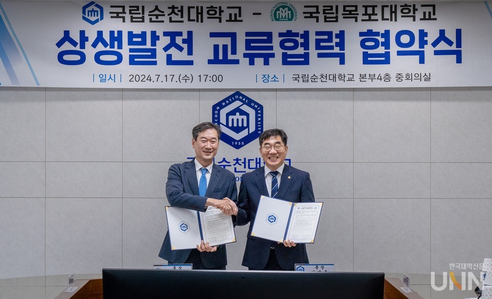 [한국대학신문 이정환 기자] 국립순천대학교(총장 이병운)는 17일 국립목포대학교(총장 송하철)와 ‘대학과 지역의 공동발전 방안 모색’을 위한 상생발전 교류협력 협약을 체결했다.
