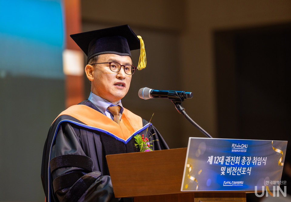[한국대학신문 이정환 기자] 경상국립대학교(GNU)는 제12대 총장 권진회 박사 취임식을 22일 오전 가좌캠퍼스 GNU컨벤션센터 대강당에서 개최했다.