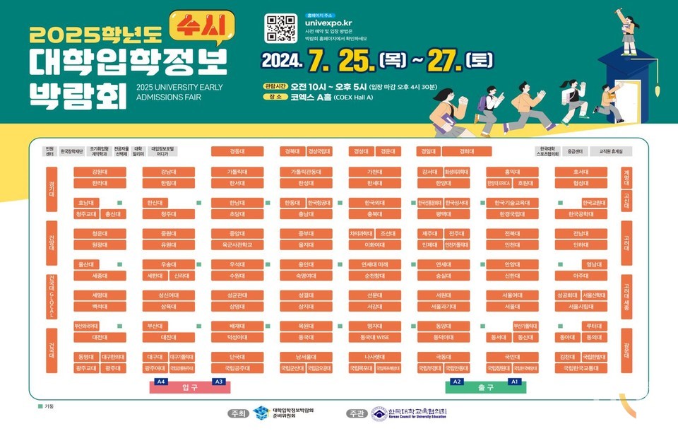 한국대학교육협의회(대교협)는 오는 25일부터 27일까지 3일간 서울 삼성동 코엑스 1층 A홀에서 전국 149개 대학이 참여하는 ‘2025학년도 수시 대학입학정보박람회’를 개최한다고 23일 밝혔다.