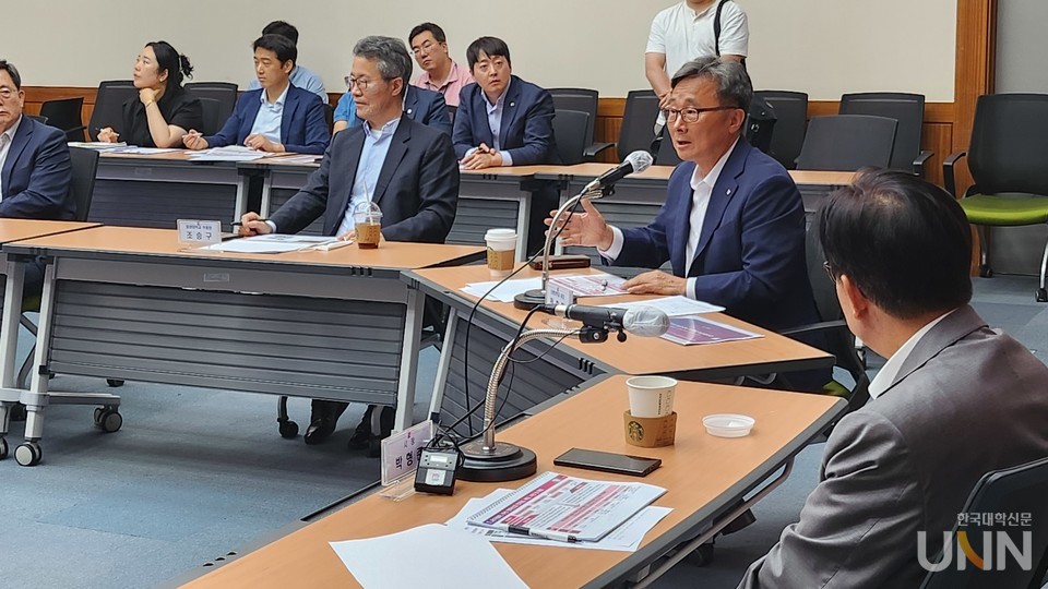 [한국대학신문 이정환 기자] 교육부 글로컬대학30 사업을 추진 중인 동명대학교(총장 전호환)·신라대학교(총장 허남식) 연합은 22일 부산시 주최 글로컬대학 비전 및 혁신전략 보고회에 참석해 지산학 관계자들과 사업 방향을 공유하는 시간을 가졌다. 이날 동명대 전호환 총장이 ‘부산 미래전략 산업을 견인하는 지산학 캠퍼스 디지텍혁신타운 기반 포괄적 연합대학’이라는 사업 비전으로 발표를 하고 이후 보고회를 주재한 박형준 부산시장을 비롯해 시 간부, 양 대학 총장, 보직교수, 학생회장, 산업체 관계자 등과 함께 발전 방향에 대한 심도 있는 논의가 이뤄졌다.