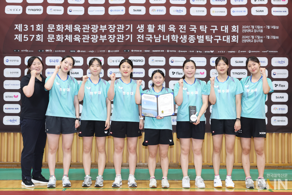[한국대학신문 이정환 기자] 청주대학교(총장 김윤배) 탁구부가 전국남녀학생종별탁구대회에서 개인복식 우승과 단체전 준우승 등을 차지했다.