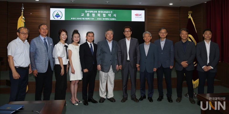 한서대 서산캠퍼스에서 진행된 협약식에는 한서대 함기선 총장, 한경근 교학부총장, 김연명 항공부총장, 한국도로공사 함진규 사장, 류종득 디지털본부 본부장, 배상중 디지털계획처장 등이 참석했다.