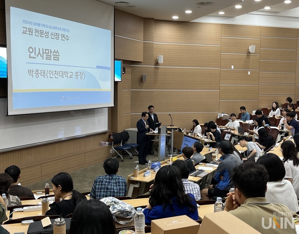 [한국대학신문 정수정 기자] 인천대학교(총장 박종태) 사범대학은 지난 24일부터 26일까지 3일간 인천 관내 고등학교 교사 128명을 대상으로 한 ‘2024년 성취평가제 및 최소성취수준 보장지도 교원 전문성 신장 연수를 진행했다.