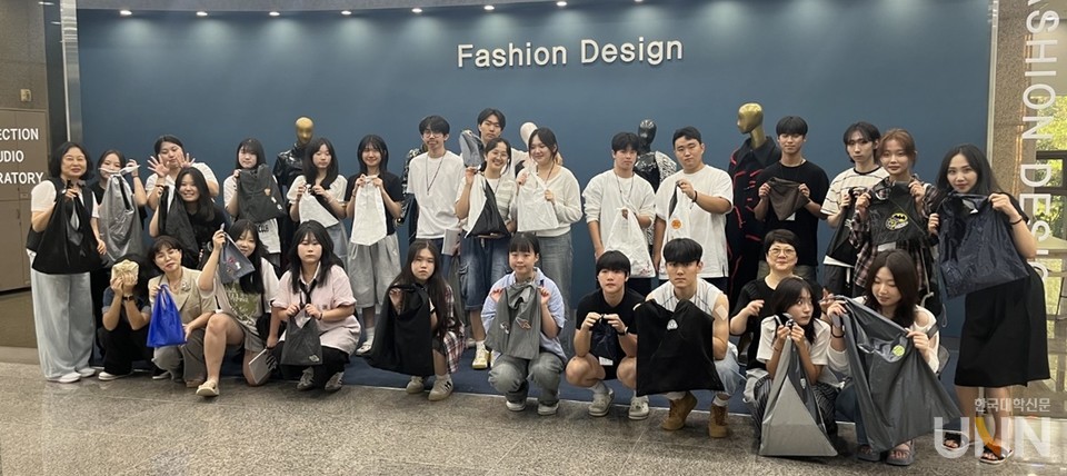 올해 프로그램에서 참가 학생들은 패션디자인학과 김지연 교수의 지도하에 최근 다양한 일상분야에서 혁신소재로 활용되고 있는 친환경 타이벡소재와 K패션 컨셉의 보자기 기법을 접목한 숄더백디자인 상품을 제작했다.