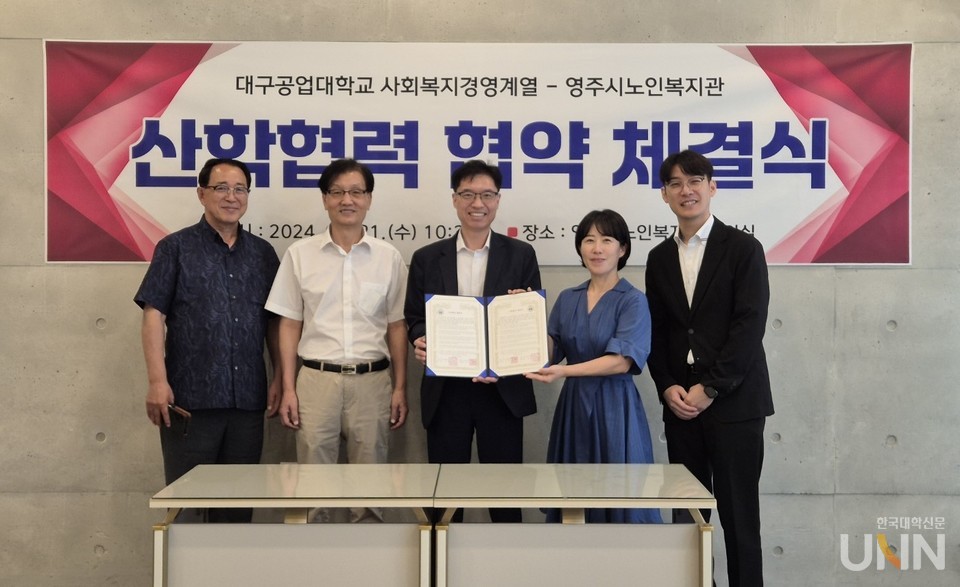 [한국대학신문 정수정 기자] 대구공업대학교(총장 이별나) 사회복지경영계열은 지난 21일 영주시노인복지관과 지역의 복지 증진과 우수인력 양성을 위해 산학협력 협약 체결식을 진행했다.