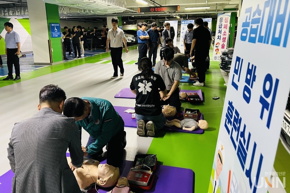 이날 교육은 심장 박동이 정지 했을 경우 흉부를 지속적으로 압박해 혈액을 순환시켜 뇌손상을 막고 심장박동 회복에 결정적인 도움을 줄 수 있는 심폐소생술 교육에 중점을 두고 진행됐다