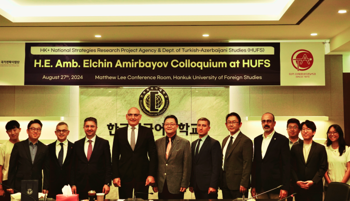 [한국대학신문 정수정 기자] 한국외국어대학교(총장 박정운)는 지난 27일 대한민국을 공식 방문한 엘친 아미르바이오프(Elchin Amirbayov) 아제르바이잔 공화국 대통령실 특명전권대사를 맞이해 특강과 세미나 등 콜로키움을 개최했다.