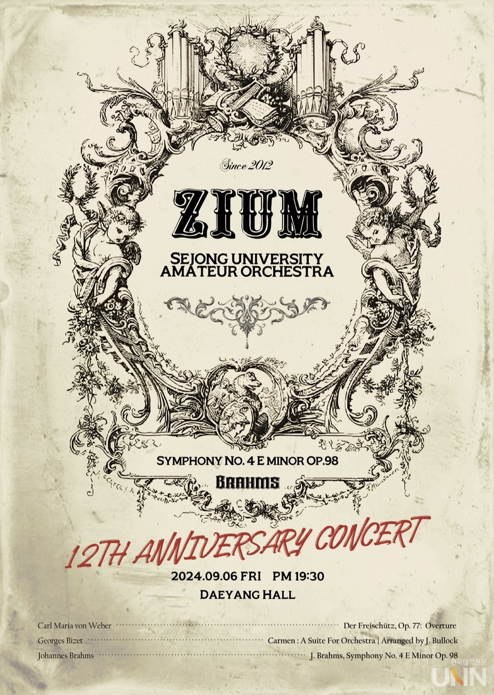 [한국대학신문 이정환 기자] 세종대학교(총장 엄종화) 학부생들로 구성된 아마추어 오케스트라단 지음이 오는 6일 저녁 7시 30분 세종대 대양홀에서 제12회 정기연주회를 개최한다.