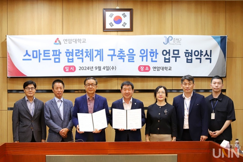 [한국대학신문 이정환 기자] 연암대학교(총장 육근열)는 4일 본관 회의실에서 증평군과 ‘스마트팜 협력체계 구축을 위한 업무 협약’을 체결했다고 밝혔다.