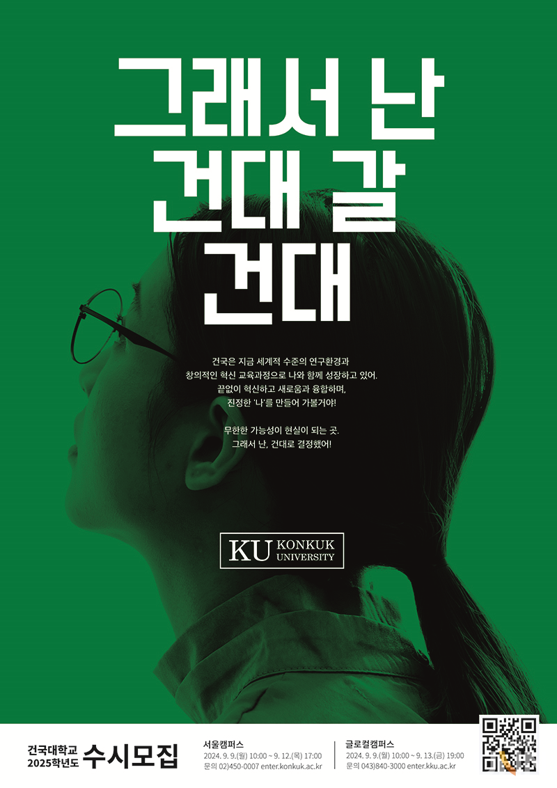 또 실기/실적 전형 1단계 합격자를 대상으로 10월 21~26일에는 KU연기우수자 실기평가가, 11월 2일에는 KU체육특기자 면접평가가 진행된다.