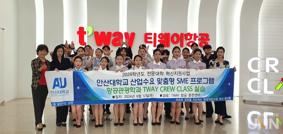 [한국대학신문 이정환 기자] 안산대학교(총장 윤동열) 항공관광학과는 지난 12일, 티웨이항공 항공훈련센터에서 전공직무역량강화 프로그램을 성공적으로 마쳤다고 밝혔다. 이번 프로그램은 티웨이항공과의 긴밀한 산학협력 관계를 바탕으로 기획됐으며, 특히 비상상황에서의 객실승무원 직무 이해와 안전 대처 능력을 집중적으로 강화하는 맞춤형 교육으로 진행됐다.