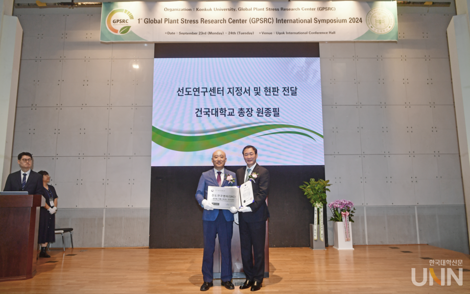 [한국대학신문 이정환 기자] 건국대학교가 지난 23일 건국대 새천년관 우곡국제회의장에서 ‘글로벌 식물 스트레스 연구센터(GPSRC, Global Plant Stress Research Center)’ 개소식을 열고 23일~24일 양일에 걸쳐 국제학술 심포지엄을 개최했다. ‘글로벌 식물 스트레스 연구센터’는 과학기술정보통신부와 한국연구재단에서 지원하는 글로벌선도연구센터(SRC)에 선정돼 향후 7년간 정부출연금 105억원과 건국대의 대응자금 7억원을 포함해 총 112억을 지원받을 예정이다.