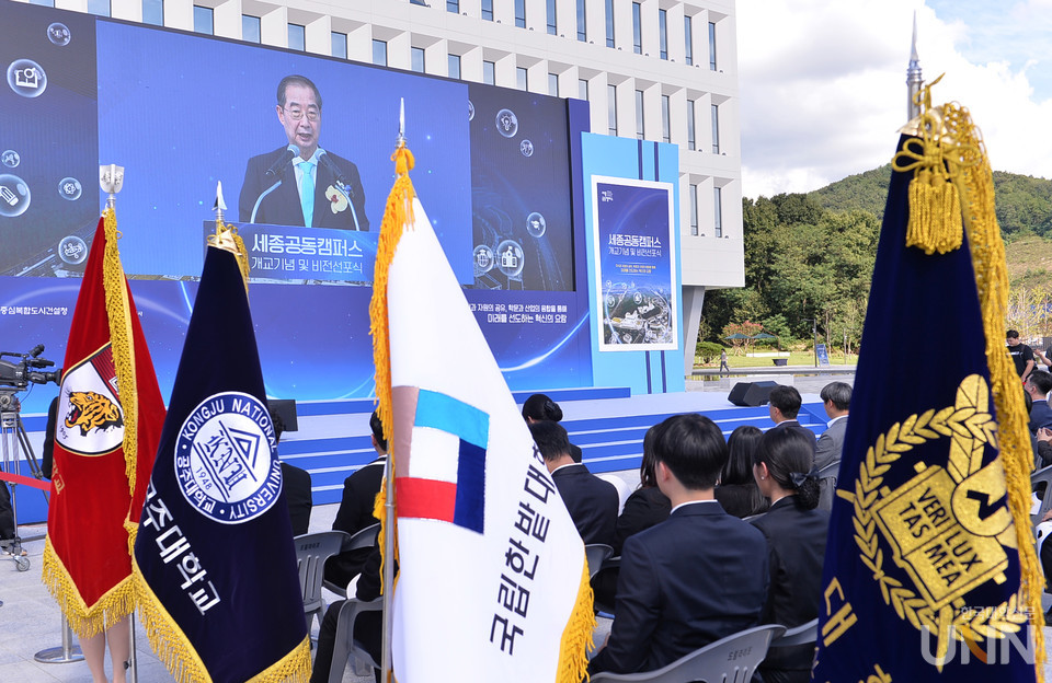 [한국대학신문 한명섭 기자] 국내 최초 공유형 캠퍼스인 세종공동캠퍼스가 25일 세종시 집현동 세종공동캠퍼스 맞이광장에서 개교기념 비전선포식 행사를 개최했다.