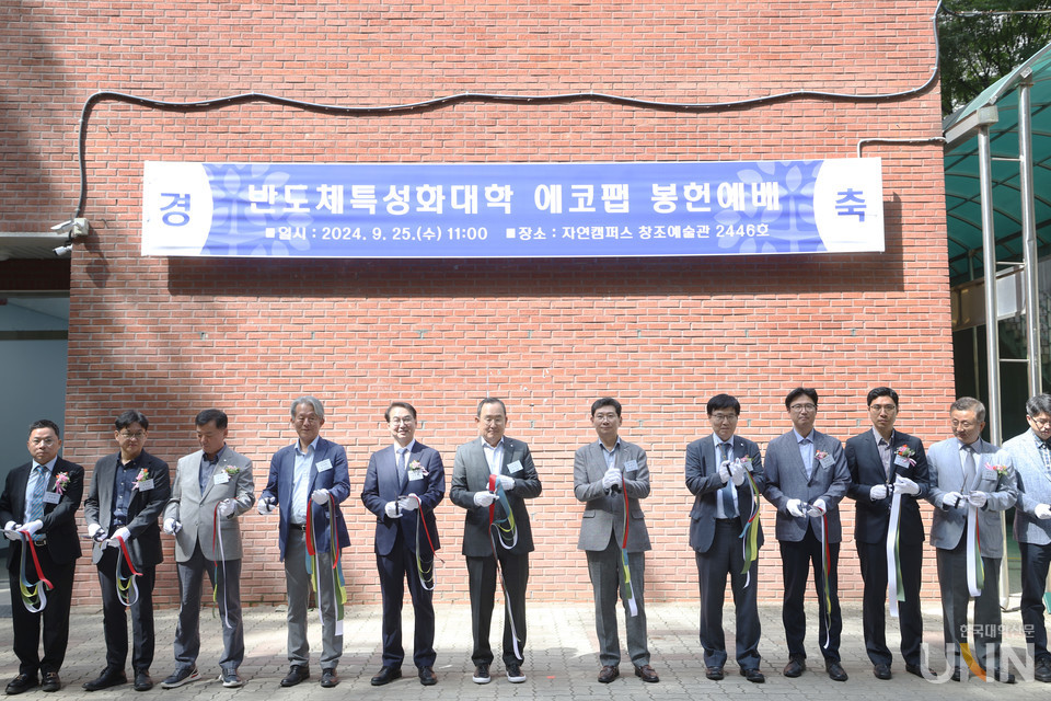 에코팹은 배출가스, 수처리, 전력모니터링 등의 친환경 반도체 소부장(소재·부품·장비) 기술을 고려한 펩이다. 이번 봉헌식은 자연캠퍼스 제3공학관 지하 1층 반도체 시설에 에코펩을 성공적으로 구축한 것을 축하하기 위해 열렸다.