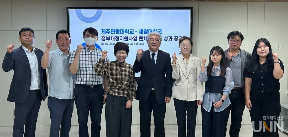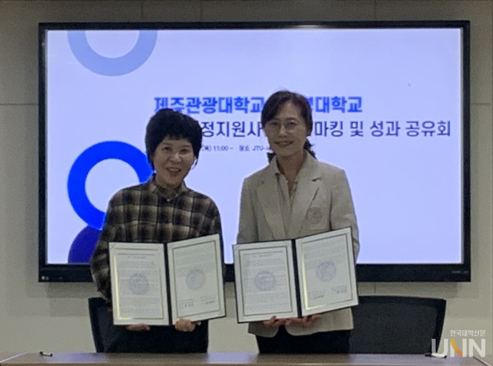 [한국대학신문 이정환 기자] 제주관광대학교(총장 김성규)와 세경대학교(총장 심윤숙)는 26일 제주관광대 초운관 사도래3.0 회의실에서 ‘재정지원사업 공동 성과 공유회’를 가졌다.