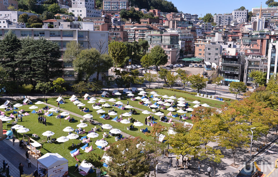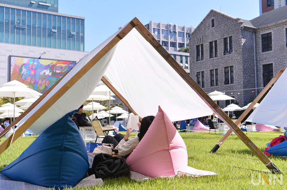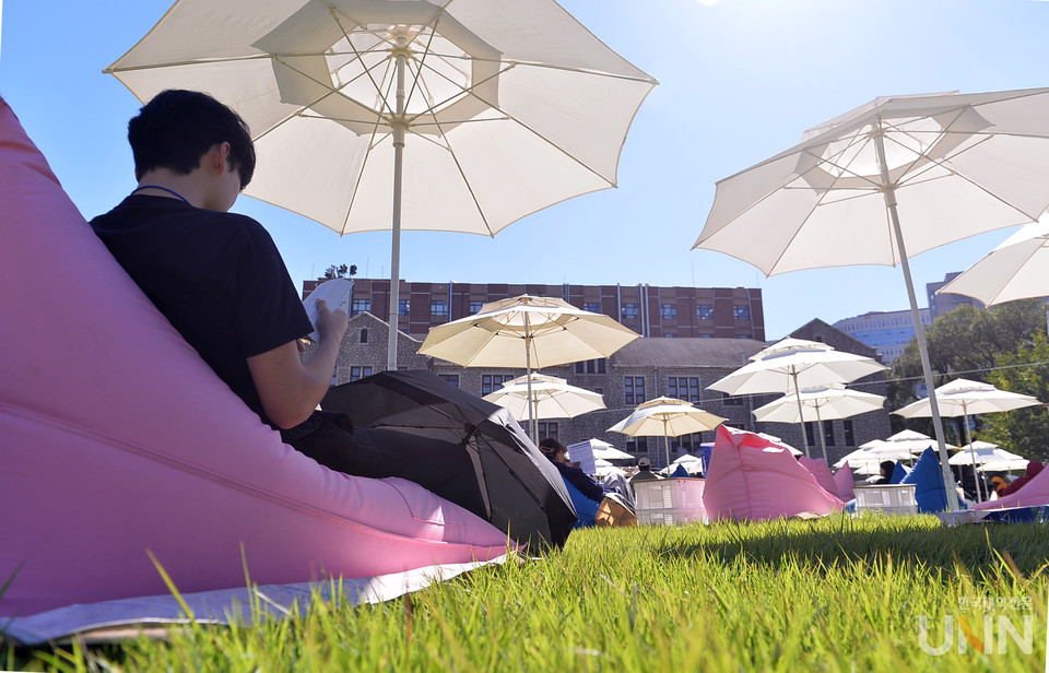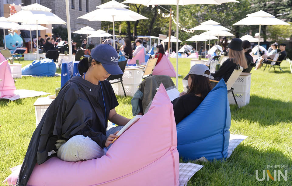 [한국대학신문 한명섭 기자] 파란 하늘 아래 독서 마당이 열렸다. 중앙대가 2일 서울캠퍼스 중앙광장에서 제1회 가을 독서 페스티벌을 개최했다.