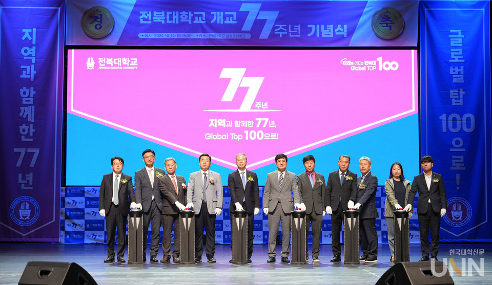 이날 기념식에는 양오봉 총장을 비롯한 대학 구성원들, 역대 총장단, 서거석 교육감, 우범기 전주시장 등 지자체장과 지역 의원, 지역 주요 기관장, 최병선 총동창회장을 비롯한 총동창회 임원진, 국내 주요 대학 총장, 지역 언론사 사장 등이 참석한 가운데 77년의 발자취를 돌아보고 대학 위상과 미래 비전을 대내외에 알리는 다채로운 행사가 풍성하게 열렸다.
