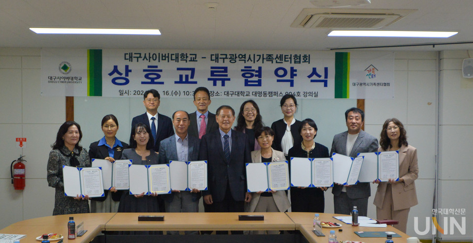 [한국대학신문 이정환 기자] 대구사이버대학교(총장 이근용)는 지난 16일 대구대학교 대명동 캠퍼스에서 대구광역시 9개 가족센터와 공동 협약을 체결했다고 밝혔다.