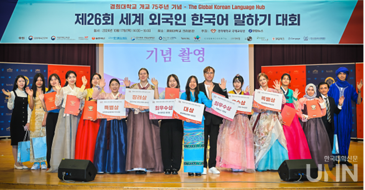 [한국대학신문 이정환 기자] 경희대학교(총장 김진상) 국제교육원과 연합뉴스가 지난 17일 서울캠퍼스 크라운관에서 개최한 ‘제26회 세계 외국인 한국어 말하기 대회’ 본선에서 영예의 대상(문화체육관광부 장관상)은 땍 야다나 킹(미얀마)씨가 차지했다. 그는 ‘대한민국은 카페 공화국’이라는 제목으로 발표했다. 그는 “여러분 모두 ‘얼죽아’라는 말, 들어보셨나요?”라는 물음으로 시작한 발표를 통해 한국인의 커피 사랑과 카페가 갖는 공간적 의미를 설명하고, 한국이 카페 공화국이 될 수밖에 없는 이유를 설명했다. 땍 야다나 킹 씨는 “한국의 카페는 공부와 업무의 공간이기도 하고 휴식을 취하는 공간이기도 하다. 추억을 만드는 공간이자 한국 관광의 필수코스이다. 한국 하면 빼놓을 수 없는 문화는 카페문화라고 생각한다”라며 자신의 의견을 밝혔다. 마지막으로 “한국에 거주하는 외국 유학생들에게 카페 투어를 추천한다. 아늑한 공간이 큰 위로가 될 것”이라고 전하며 발표를 마무리했다.