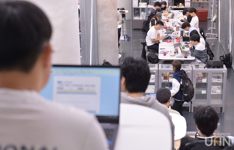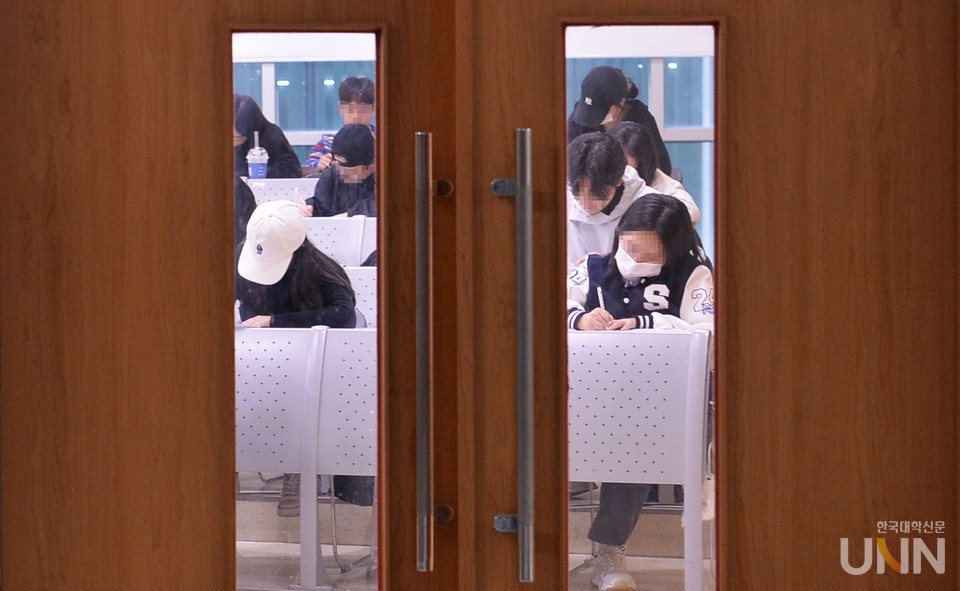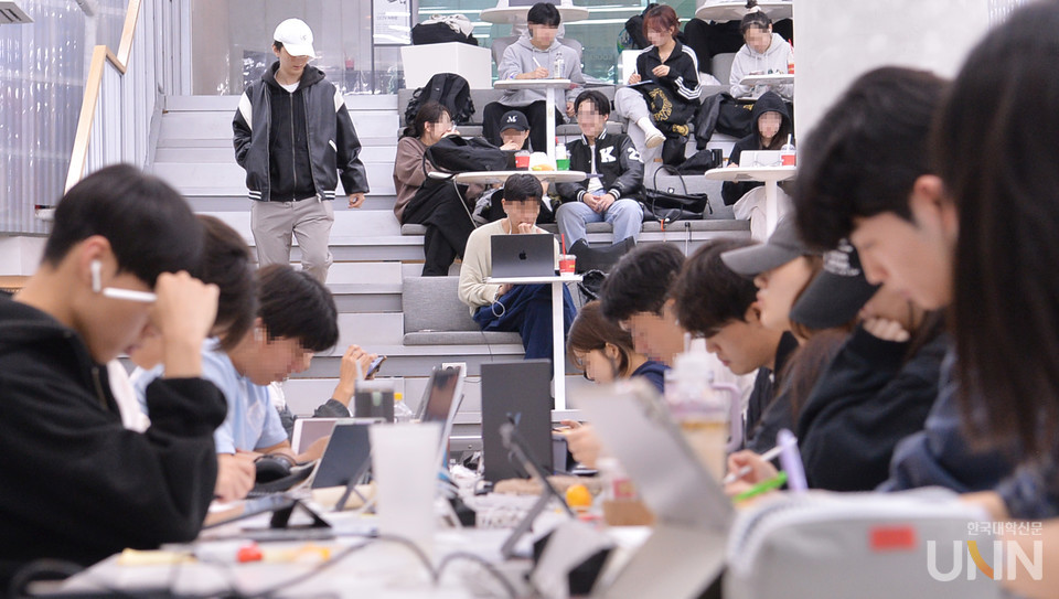 [한국대학신문 한명섭 기자] 중간고사가 시작되면서 캠퍼스 곳곳이 공부 열기로 가득하다. 교내 카페와 도서관 등은 빈자리를 찾기 어렵다.
