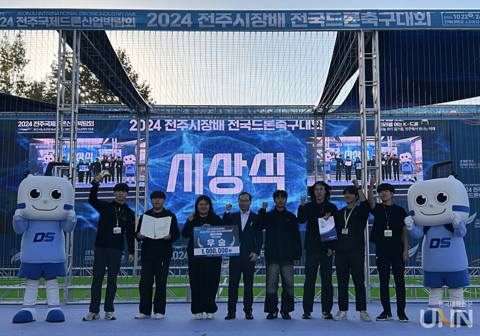 학생들을 지도한 송상욱교수는 “지난 2024 남원시장배 드론축구대회 준우승에 이어 이번 대회에 우승을 차지해서 올해 마지막 대회를 우수한 성적으로 유종의 미를 거둬 대학부 최강팀으로 마무리해서 너무나 기쁘다”며, “이번 대회 우승으로 자신감을 얻은 선수들에게 다시 한번 축하하고 이번 겨울 훈련을 통해 내년 대회 준비 잘하기를 바라고, 학생들이 편하게 수업과 훈련을 병행할 수 있도록 지원하겠다” 말했다.