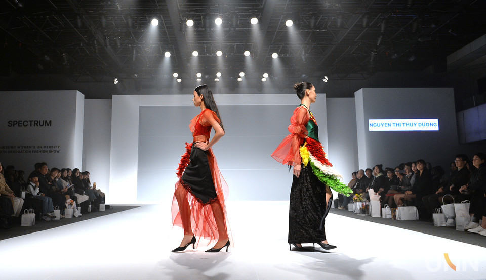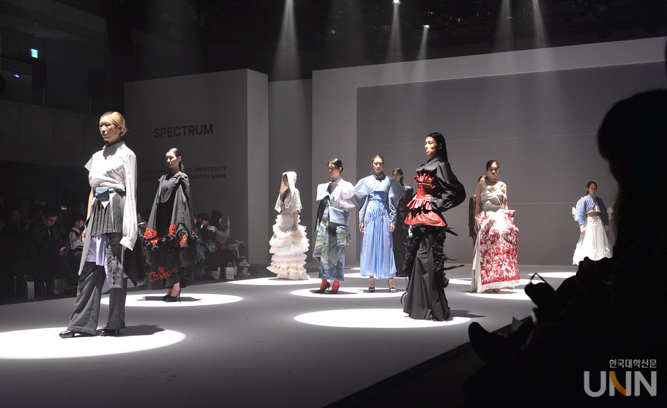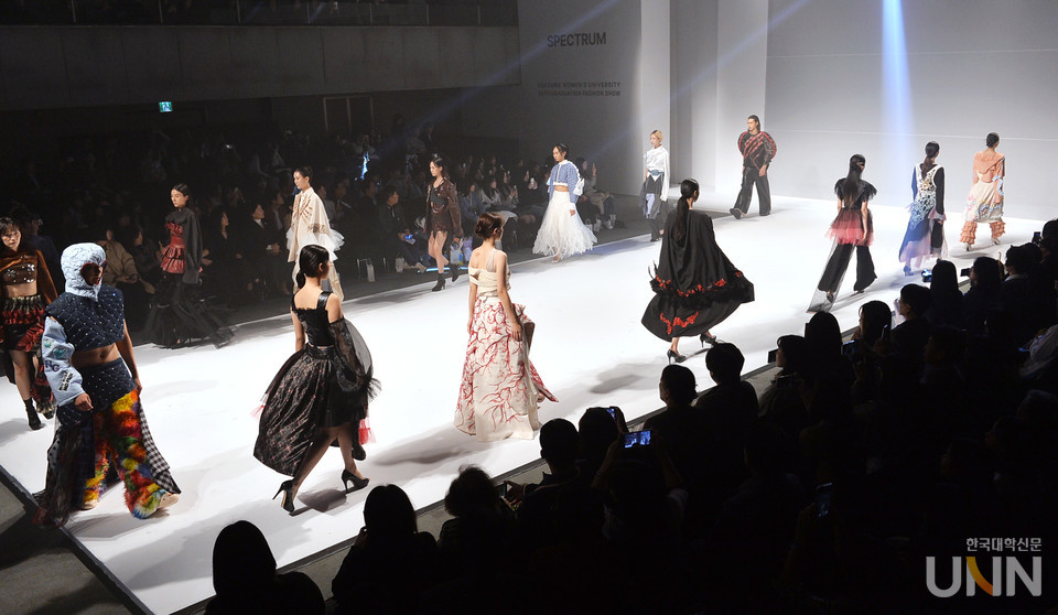 'SPECTRUM'이라는 주제로 25일 서울 삼성동 섬유센터 이벤트홀에서 열린 패션쇼에는 졸업예정 33명의 창의성과 열정이 담긴 작품이 절제·전승·환상·몽상·낭만·귀결·변주 등 7개 스테이지에서 1부와 2부로 나뉘어 두차례 선보였다.