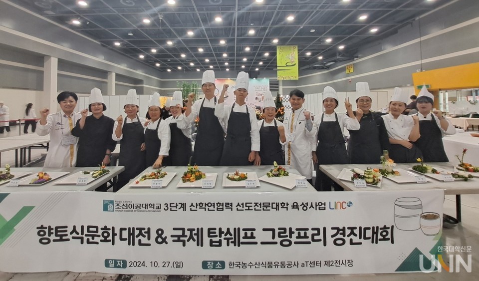 [한국대학신문 정수정 기자] 조선이공대학교(총장 조순계)가 제22회 대한민국 향토식문화대전·국제탑쉐프 그랑프리 대회에서 환경부장관상, 전남도지사상, 한국농수산식품유통공사장상을 비롯해 출전자 전원이 수상하는 쾌거를 거뒀다.