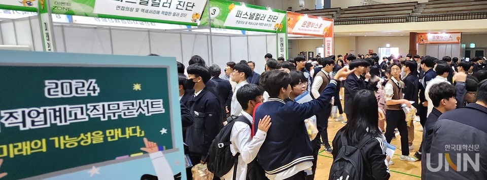 [한국대학신문 이정환 기자] 대전지역 최초로 직업계고 학생들의 취업지도를 위한 ‘2024년 대전 직업계고 직무콘서트: 미래의 가능성을 만나다’가 11일 동아마이스터고 누리관에서 성대하게 열렸다. 고용노동부와 배재대 대학일자리플러스본부, 동아마이스터고가 주최한 이번 직무콘서트는 대전지역 직업계고 학생 1500여명이 참가해 직무별 컨설팅을 받느라 성황을 이뤘다.