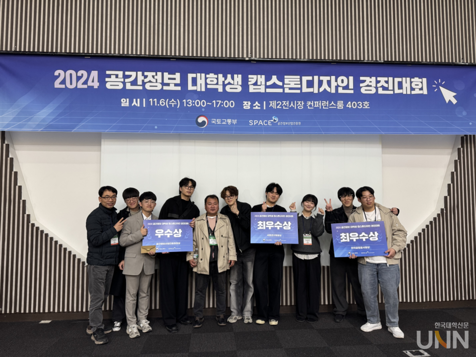 [한국대학신문 이정환 기자] 신구대학교 지적공간정보학과 2024 K-GEO Festa에서 열린 ‘공간정보 대학생 캡스톤디자인 경진대회’에서 최우수상을 수상하는 영예를 안았다. 이번 대회는 지난 6일 일산 킨텍스에서 개최됐으며, 공간정보 특성화 전문대학으로 지정된 신구대, 대구과학대, 인하공업전문대학, 전주비전대 등 4개 대학 12개 팀이 참가해 공간정보를 활용한 창의적인 작품을 발표했다.