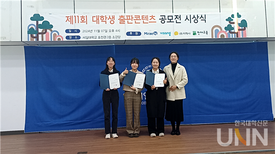 [한국대학신문 이정환 기자] 대림대학교(총장 황운광) 도서관미디어정보과 창의융합전공동아리 ‘북프랜즈’(지도교수 이수영)학생들이 2024년 제 11회 대학생 출판 콘텐츠 공모전에서 최우수상과 장려상을 수상했다.