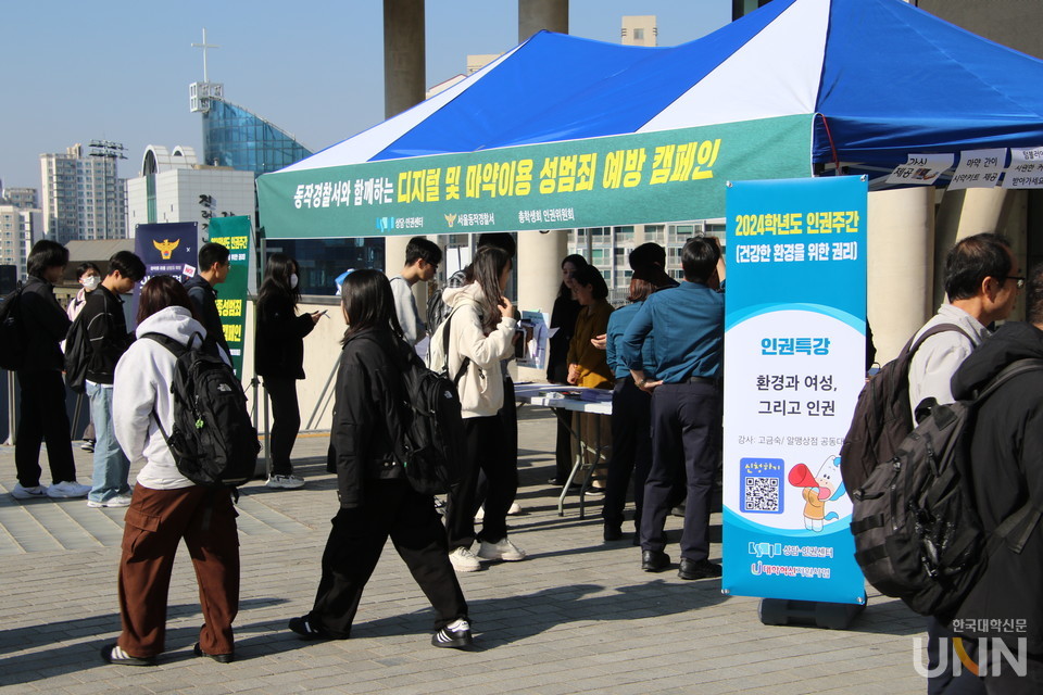 [한국대학신문 이정환 기자] 숭실대학교 상담·인권센터(센터장 박승민)는 지난 11일과 12일 이틀간 총학생회 인권위원회와 협력해 ‘건강한 환경을 위한 권리’와 ‘안전한 환경을 위한 권리’를 주제로 인권주간 행사를 성황리에 마쳤다.