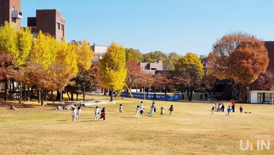 그림 같은 은행나무와 넓게 펼쳐진 잔디밭은 해맑은 뒴박질을 하며 나들이 나온 대학 부속 유치원 어린이들 차지.