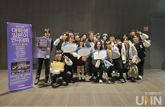 [한국대학신문 이정환 기자] 건국대 사범대학 일어교육과 연극부 ‘이치고 이치에’는 지난 16일 서울 청량리 김희수 아트센터에서 개최된 주한일본대사관 공보문화원 주최 ‘제10회 대학생 일본어연극대회’에서 우승했다. ‘이치고 이치에’ 팀은 이번 대회에서 1등 상인 ‘그랑프리상’뿐만 아니라 남자 부문과 여자 부문 모두의 최우수 연기상을 수상하는 쾌거를 이뤘다.