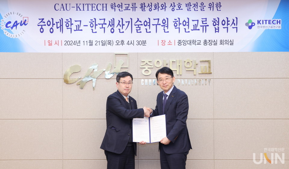 [한국대학신문 이정환 기자] 중앙대학교(총장 박상규)와 한국생산기술연구원(원장 이상목)이 공동연구 추진과 우수 연구인력 발굴을 위해 손을 맞잡았다.