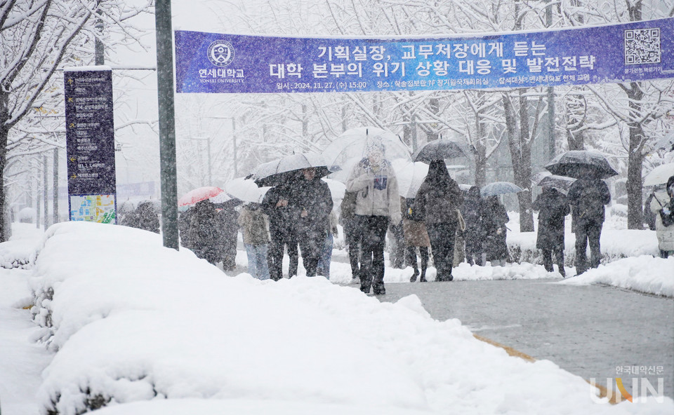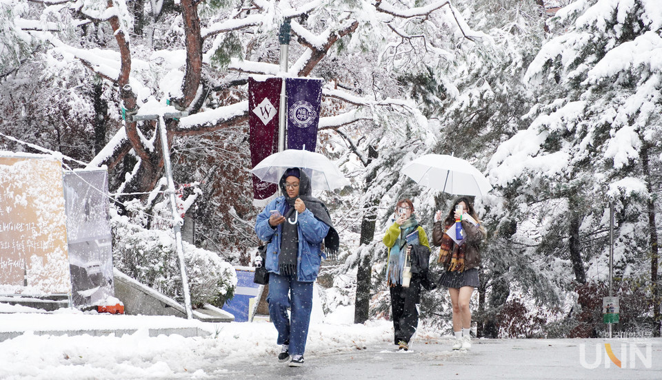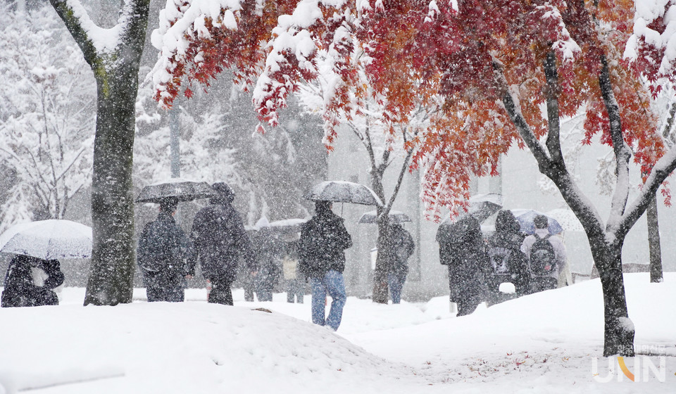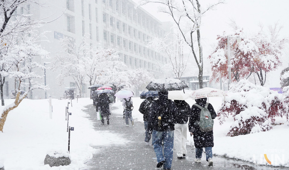 [한국대학신문 한명섭 기자] 대설주의보가 내려진 27일 서울·수도권 지역 대학의 캠퍼스가 설국으로 변했다.