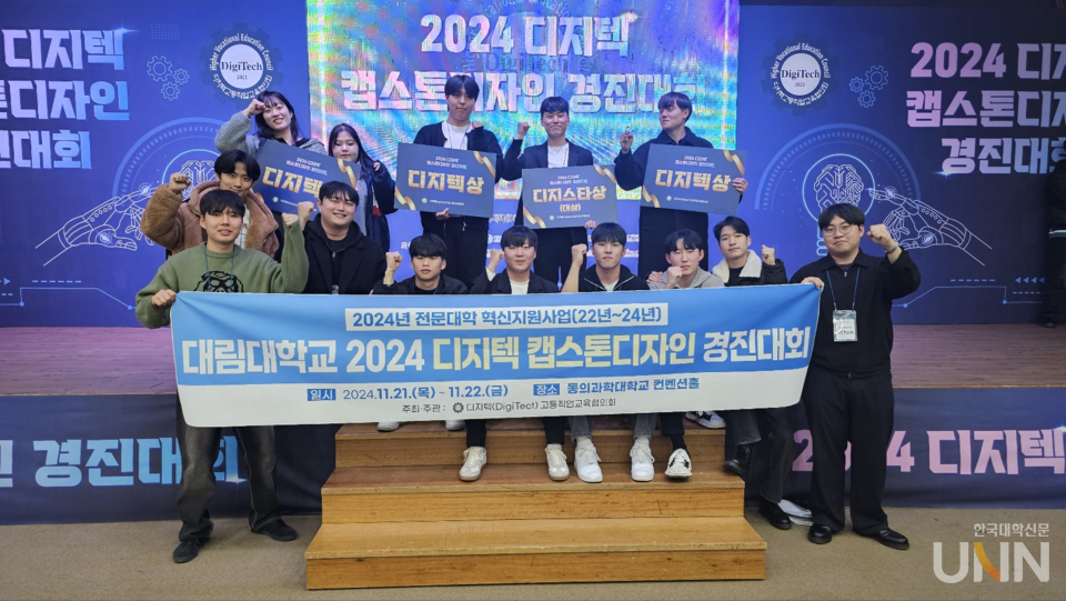[한국대학신문 이정환 기자] 대림대학교가 지난달 21일 부산 동의과학대학교 컨벤션홀에서 개최된 ‘2024 디지텍 캡스톤디자인 경진대회’에서 디지스타상(대상), 디지텍 상 등을 수상하는 우수한 성과를 달성했다.