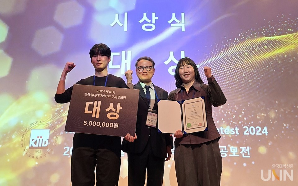 [한국대학신문 이정환 기자] 가톨릭대학교(총장 원종철) 공간디자인‧소비자학과 재학생들이 (사)한국실내디자인학회가 주최한‘2024 제16회 한국실내디자인 주제공모전’에서 대상을 수상했다.