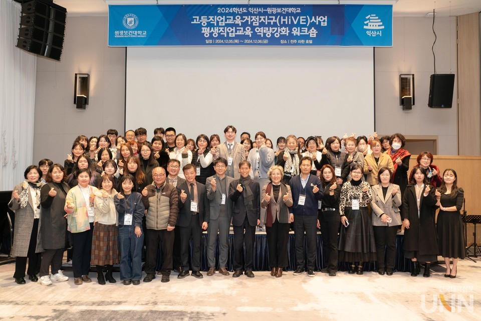 [한국대학신문 이정환 기자] 원광보건대학교(총장 백준흠)가 고등직업교육거점지구사업(이하 HiVE 사업) 평생직업교육 역량강화를 위한 투게더 워크숍을 5 ~ 6일 전주 라한호텔에서 개최했다고 밝혔다.