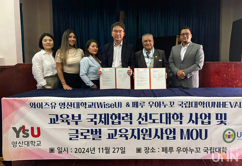 [한국대학신문 이정환 기자] 와이즈유 영산대학교(총장 부구욱)가 최근 페루의 에르밀리오 발디잔 우아누꼬 국립대학교(UNHEVAL, Universidad Nacional Hermilio Valdizan-Huanuco)와 협약을 맺었다.