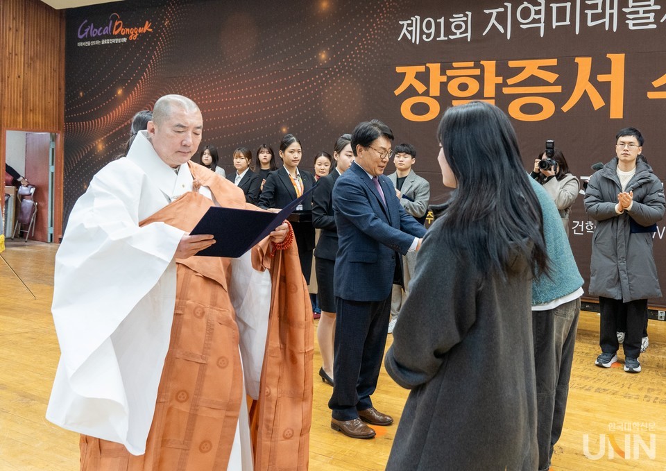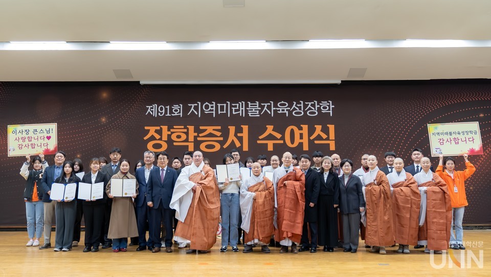 [한국대학신문 이정환 기자] 동국대학교 건학위원회가 13일 교내 문무관에서 제 91회 ‘지역미래불자육성장학’ 장학증서 수여식을 성대하게 개최했다.
