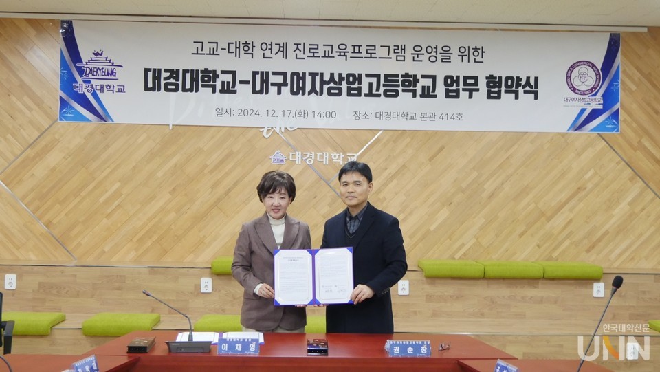 [한국대학신문 이정환 기자] 대경대학교(총장 이채영)와 대구여자상업고등학교(교장 권순창)가 17일 대학-고교 간 원스톱으로 진로프로그램 연계를 위한 업무협약을 했다고 밝혔다.