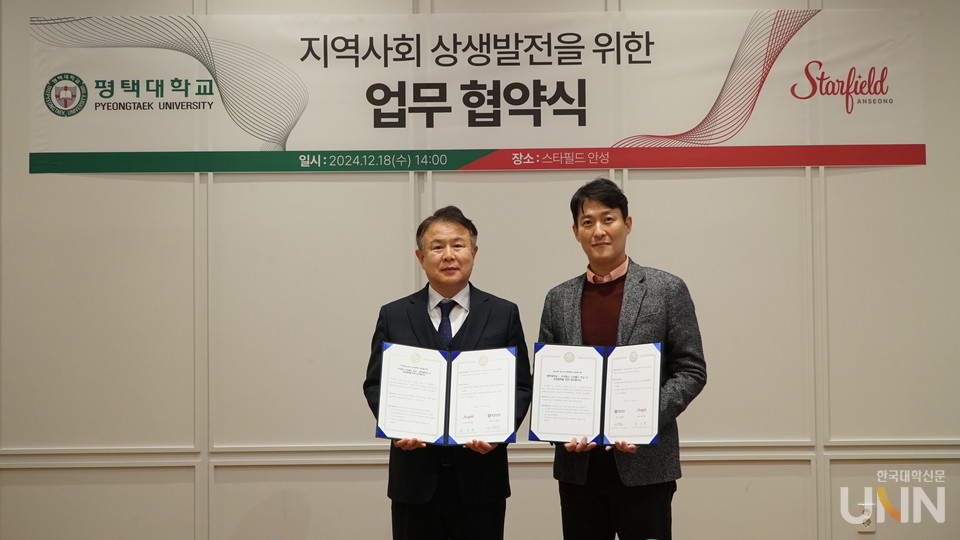 [한국대학신문 이정환 기자] 평택대학교(총장 이동현)는 스타필드 안성(점장 최준형)과 지역사회 상생 및 문화콘텐츠 발전을 위한 업무협약을 18일 맺었다.