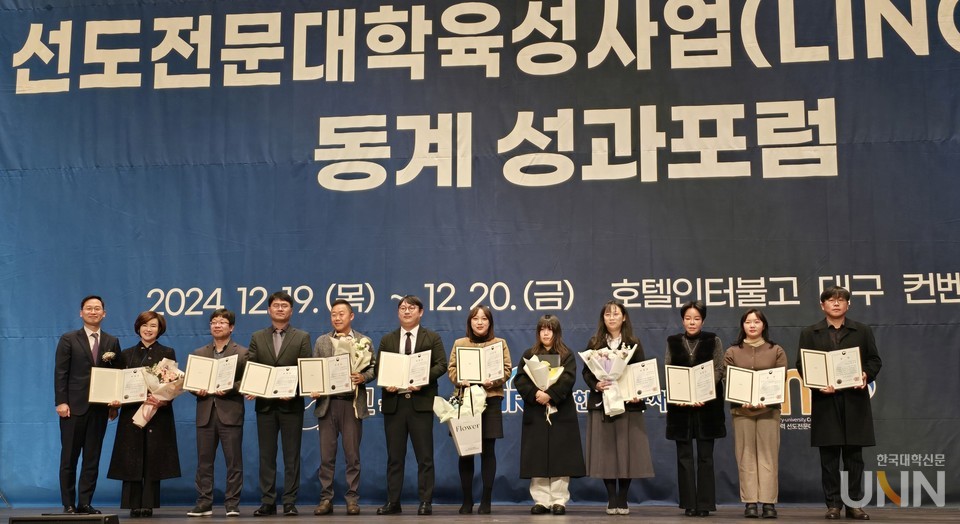 이번 포럼에서는 △업무 유공자 표창 △링크루트 수상 △2024년 LINC 3.0 어워드(Award) 왕중왕전 수상 등 시상식도 진행됐다. 업무 유공자 표창에는 △김옥미 대경대 교수 △김현수 씨(울산과학대) △이세영 씨(연암대) △김경태 제주한라대 교수 △박정현 부산과기대 교수 △권유정 씨(전주기전대학) △윤지현 씨(동아방송예술대) △오수연 씨(강원도립대) △김지은 미담장토탈뷰티 대표 등 총 9명이 수상했다. 링크루트 부문에는 부산여대 차호정 학생이, 2024년 LINC 3.0 어워드(Award) 왕중왕전 수상자에는 김진석 세미즈 대표이사(경남정보대)가 선정됐다.