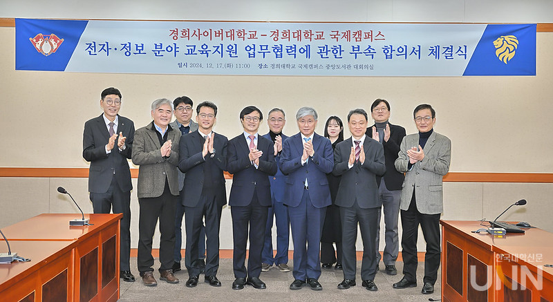 [한국대학신문 이정환 기자] 경희사이버대학교(총장 변창구)는 지난 17일 경희대학교 국제캠퍼스(학무부총장 홍충선)와 경희정신을 바탕으로 우수한 인력 양성을 위한 교육지원 업무협력을 체결했다.